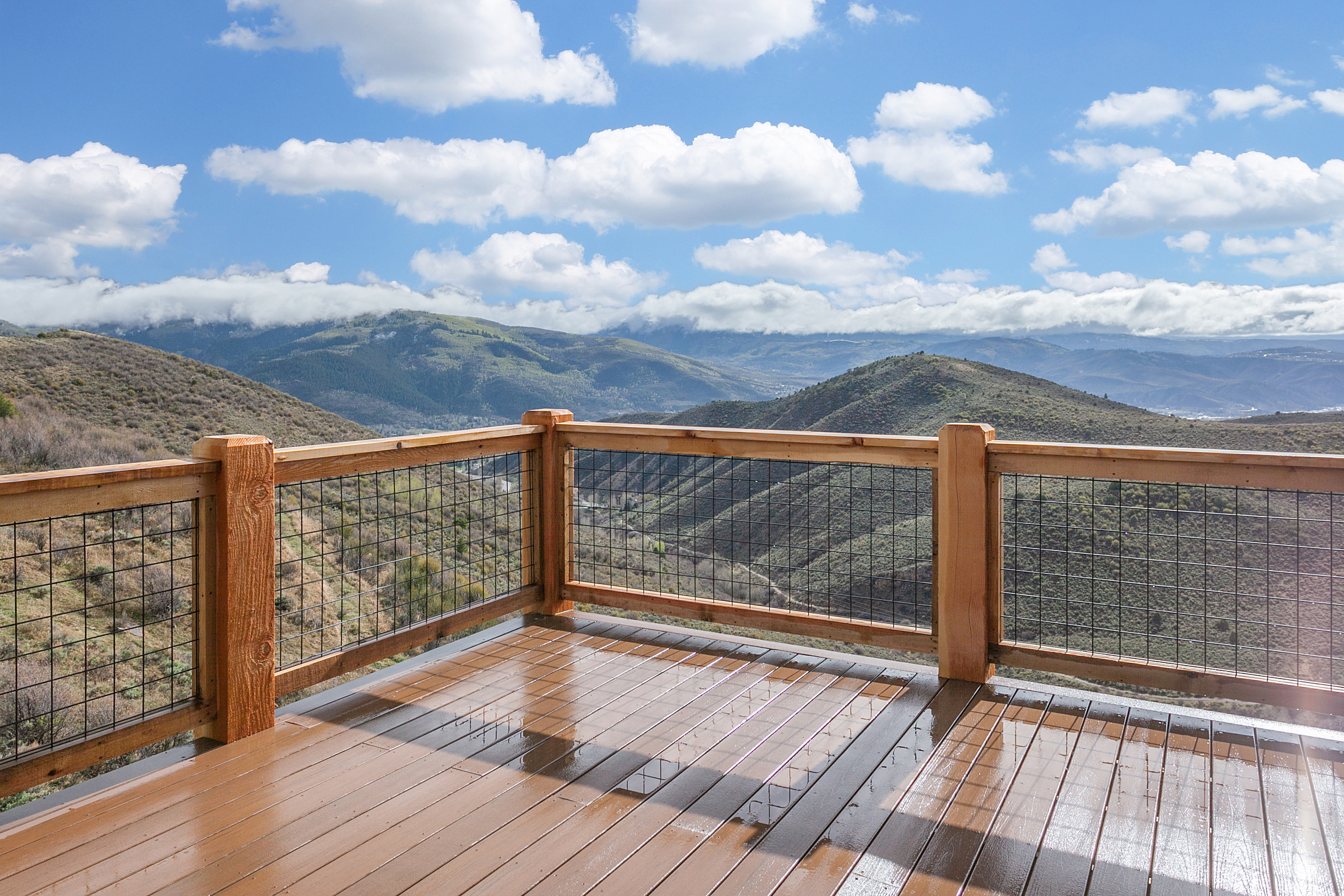 Natural light floods the open living with accents of wood beams and warm wood T&G ceiling.